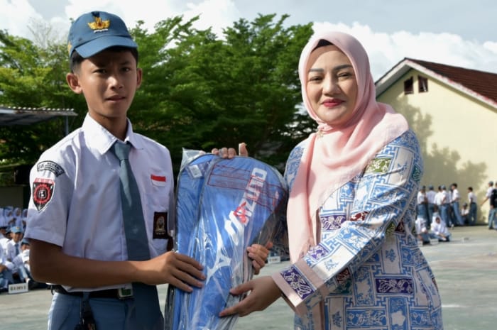 Adde Rosi Serahkan Bantuan Alat Olahraga Kemenpora ke SMKN 1 Rangkasbitung